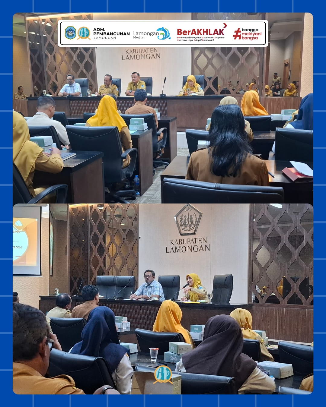 Lamongan (2025/07/22) — Bertempat di Ruang Rapat Airlangga Lt. 3, Gedung Pemerintah Kabupaten Lamongan, Bagian Administrasi Pembangunan Sekretariat Daerah Kabupaten Lamongan menyelenggarakan Sosialisasi Peraturan Bupati Lamongan tentang Analisis Standar Belanja (ASB) dan Harga Satuan Pokok Kegiatan (HSPK) Tahun Anggaran 2026.