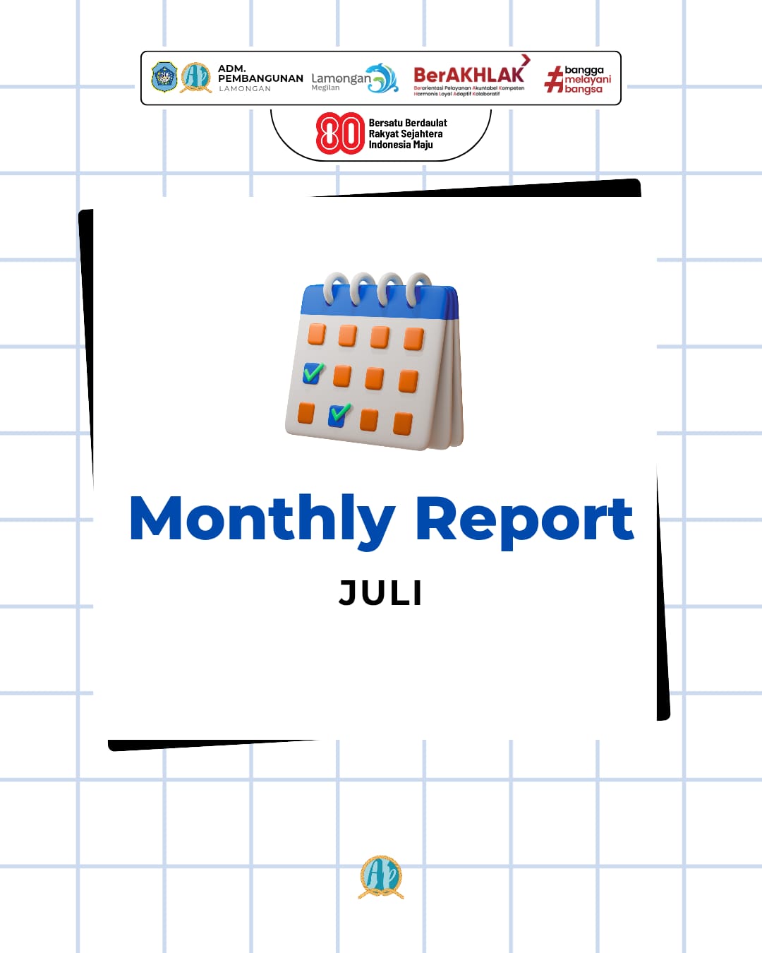 Laporan bulanan ini menjadi bukti komitmen Bagian Administrasi Pembangunan dalam mendukung kinerja dan nilai-nilai ASN BerAKHLAK untuk mewujudkan pelayanan publik yang unggul di Kabupaten Lamongan.