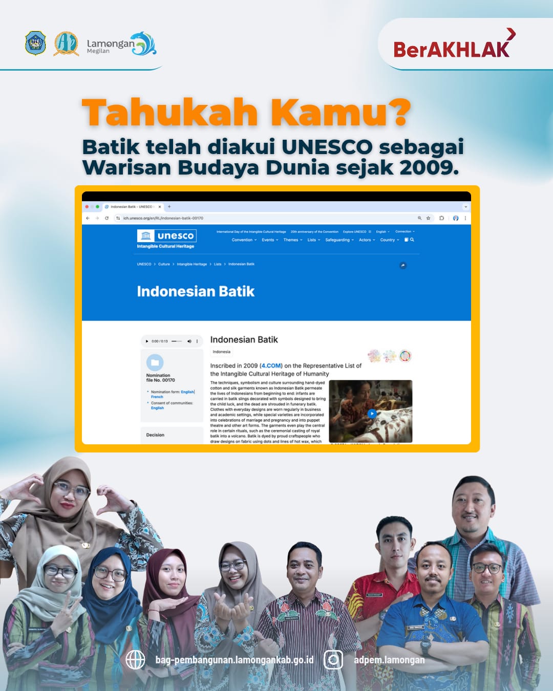 Sejak tahun 2009, Batik resmi ditetapkan UNESCO sebagai Warisan Budaya Tak Benda Dunia. 🎉
